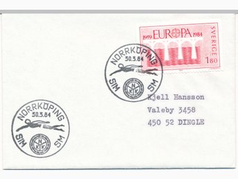 Minnespoststämpel Norrköping Sim SM 1984