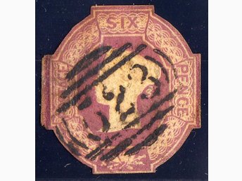 ENGLAND 121. VICTORIA BRA 6 P * LILA/ BRUN ÅR 1847...MYCKET SÄLLSYNT...