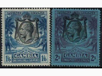 Gambia Mi 105-06 George V Elefant 1 shilling 6 pence, 2 shilling 1922 ostämplat