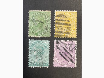 Engelska Samväldet - 4st Queensland - Bla 1 Shilling Lila - 1880 tal - Samfrakt