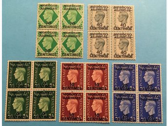 5 block intäktsstämplar - Morocco Agencies - KGVI med övertryck 1930-talet