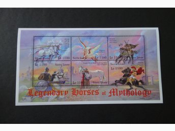 HÄSTAR/LEGENDARY HORSES OF MYTHOLOGY,Postfriskt frimärksblock,6 olika frimärken