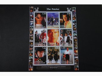 THE PATRIOT/MEL GIBSON/HEATH LEDGER, Postfriskt frimärksblock, 9 olika frimärken