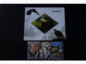 FÅGEL / FÅGLAR, Postfriskt frimärksblock och Postfrisk 3-strip,4 olika frimärken