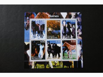 HÄST / HÄSTAR, Postfriskt frimärksblock, 6 olika frimärken