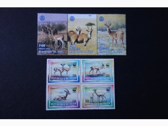 GASELLER / ANTILOPER, Postfrisk 3-strip och Postfriskt 4-block,7 olika frimärken