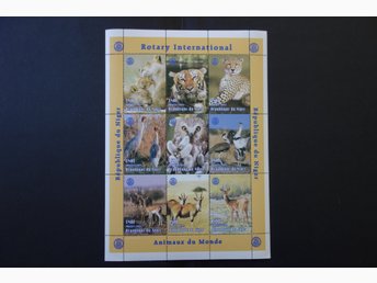 LEJON / TIGER / LEOPARD / UGGLA / MM, Postfriskt frimärksblock,9 olika frimärken