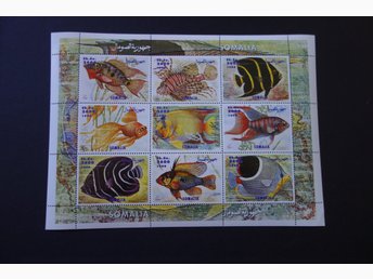 FISK / FISKAR, Postfriskt frimärksblock, 9 olika frimärken