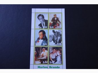 MARLON BRANDO, Postfriskt frimärksblock, 6 olika frimärekn