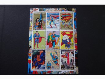 SUPERMAN, Postfriskt frimärksblock, 9 olika frimärken