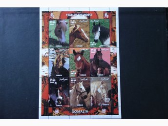 HÄST / HÄSTAR, Postfriskt frimärksblock, 9 olika frimärken