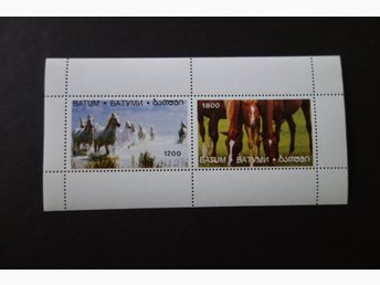 HÄST / HÄSTAR, Postfriskt frimärksblock, 2 olika frimärken