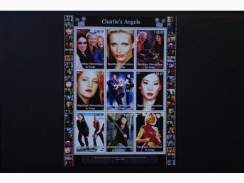 CHARLIE'S ANGELS/DIAZ/BARRYMORE/LIU, Postfriskt frimärksblock, 9 olika frimärken