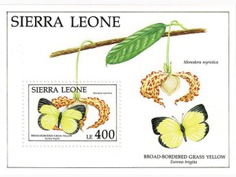 SIERRA LEONE 1991 Mi BL 171 BREDBÅRDAD GRÄSGULVINGE FJÄRIL MINIARK ** VÄRDE 75.-