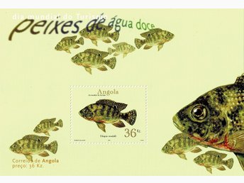 ANGOLA 2001 Mi BL 96 FÄRSKVATTENSFISKAR MINIARK **