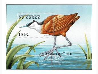 KONGO 2000 Mi BL 90 AFRIKANSK JAKANA FÅGEL MINIARK **