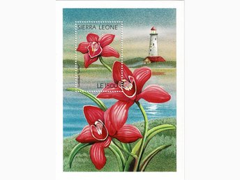 SIERRA LEONE 1996 Mi BL 307 CYMBIDIUM LUCIFER ORKIDÉ OCH FYR MINIARK **