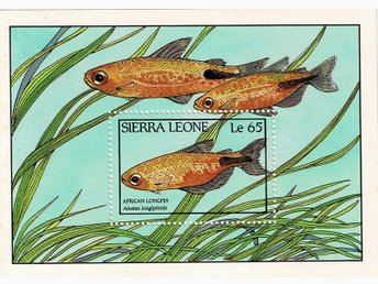 SIERRA LEONE 1988 Mi BL 76 AFRIKANSK LÅNGFENA FISKAR MINIARK ** VÄRDE 75.-