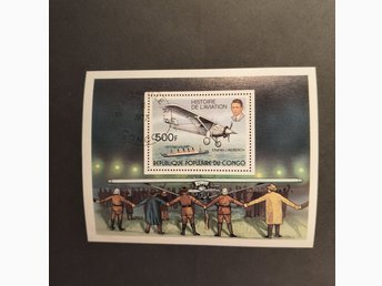 Congo 1977 . Flygplan Charles Lindbergh . Stämplat block