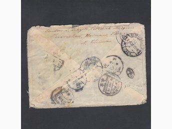 Missionärsbrev från Kina via Sibirien t Köping 1916. Medfaret. Studera stämplar.