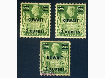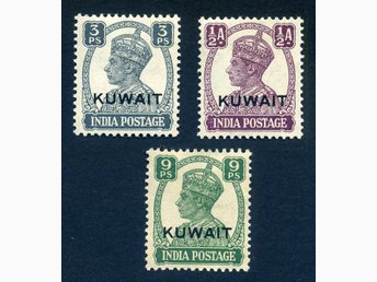 KUWAIT. MI.52-53-54. KING GEORGE VI. INDIA POSTAGE. OSTÄMPLAT. 1945.