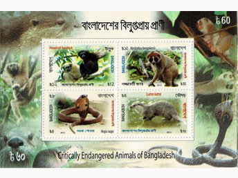BANGLADESH 2012 Mi BL 50 KRITISKT UTROTNINGSHOTADE DJUR MINIARK **