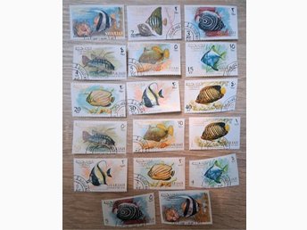 Frimärken Umm Al Qiwain 1967 Fiskset helt makulerat