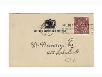 Brevkort från Australien Stämplat Skyddsperforerat O.S
