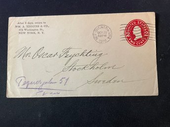 USA -brev skickat till Sverige 1916