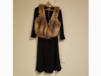 Svart klänning med fuskpäls väst från H&M