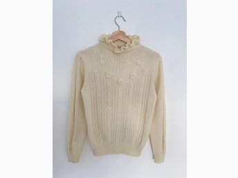Vintage Emanuelle cremevit ullmix tröja med polokrage, storlek L