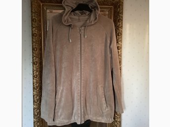 MYSPLAGG I VELOUR storlek 2XL HUVJACKA MED DRAGKJEDJA OCH FICKOR BEIGE