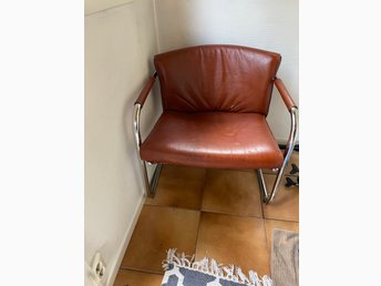 Vintage Sling Skillingaryg Läderfåtölj med kromad ram