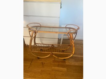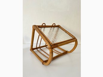 Hylla / sängbord / telefonhylla i rotting bambu och glas