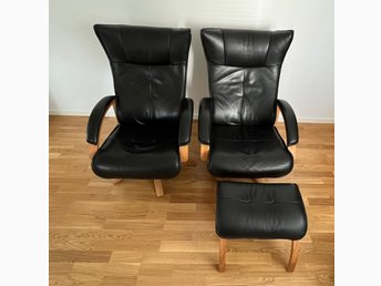 Design fåtölj från Conform - Easy - läderfåtölj 1st (högra) & fotpall läder 1st