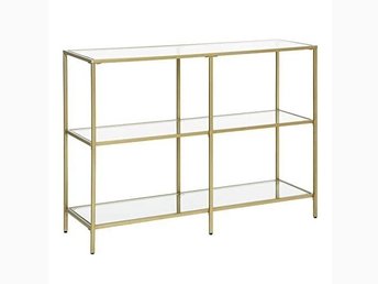 Vasagle Console Table, soffbord med 3 hyllor, härdat glashylla, guldfärg LGT27G