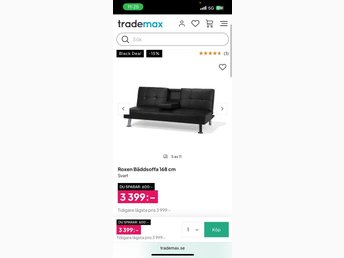 Roxen Bäddsoffa 168 cm - Svart
