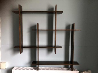 Retro Prylhylla Vägghylla i trä 49×40 cm Fint skick