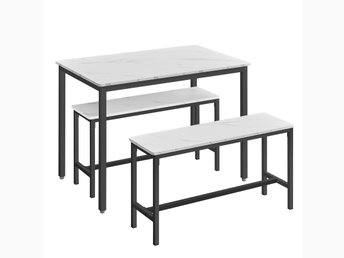 Matbords grupp för 4 personer, köksbord med 2 bänkar, marmorvit och KDT070B59