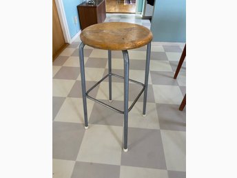 Barstol i metall och trä, industridesign, 50tal, 60tal.