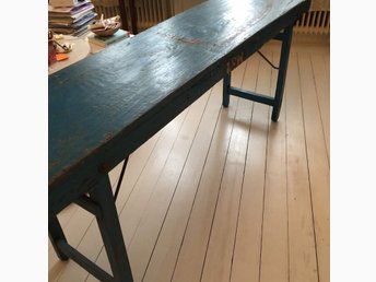 Fint praktiskt ihopfällbart avlastningsbord massivt vintage rustikt träbord