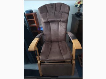 Elektrisk recline fåtölj i trä med fotstöd och uppresningshjälp
