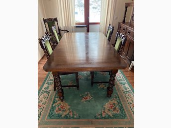 Matbord med stolar samt tillhörande skåp, äldre engelsk stil