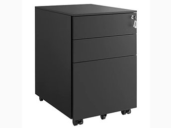 SONGMICS mobilt arkivskåp med 3 lådor Låsbar stålpiedestal, svart OFC60BK
