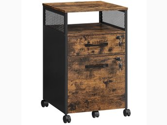 VASAGLE arkivskåp med 2 lådor, rullande kontorsarkivskåp, rustikt brunt OFC71X