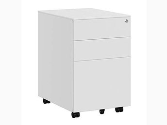 SONGMICS Stål rullskåp med 3 lådor och hängmapp Låsbart kontorsskåp OFC60WT