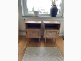 ILVA - 2 st sängbord Aries i ek med rottingdörr