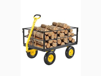 Extra kraftig trädgårdsvagn i stål med 635 kg kapacitet och 33 cm däck