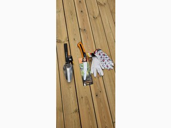 Trädgårdsredskap Set: Fiskars Spatel, Såg och Handskar