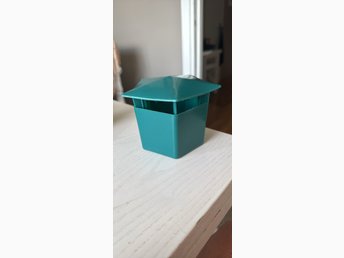 Sprayflaska/Blomspruta i färgat glas och hårdplast.